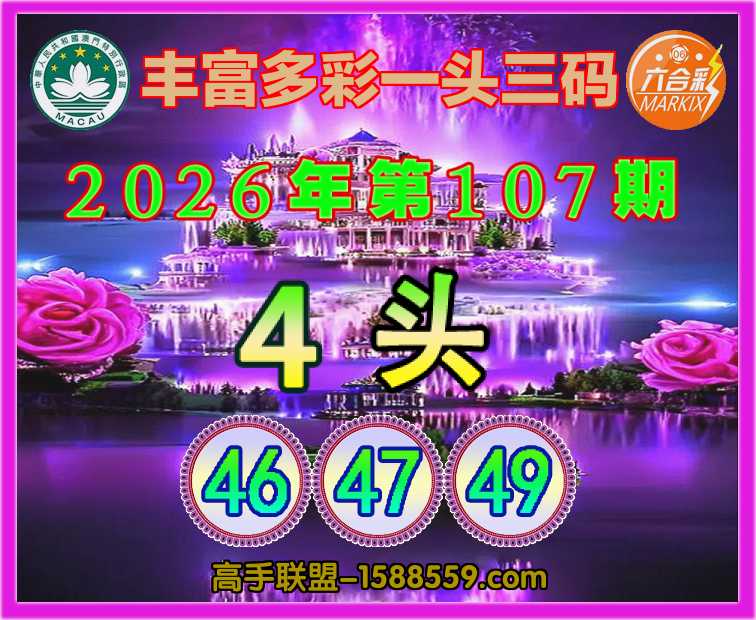 107期:【丰富多彩】 ♣️一头三码♣️【4头主:46.47.49】开:马49