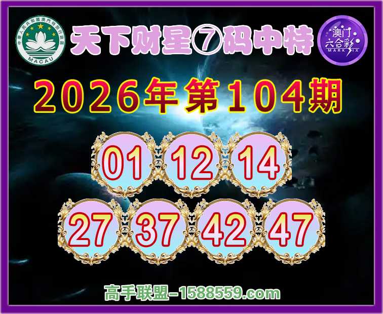 104期:〖天下财星〗 🍖⑦码中特🍖【01.12.14.27.37.42.47】开:01