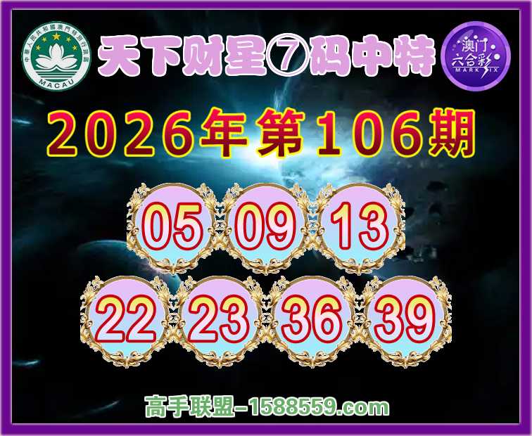 106期:〖天下财星〗 🍖⑦码中特🍖【05.09.13.22.23.36.39】开:22