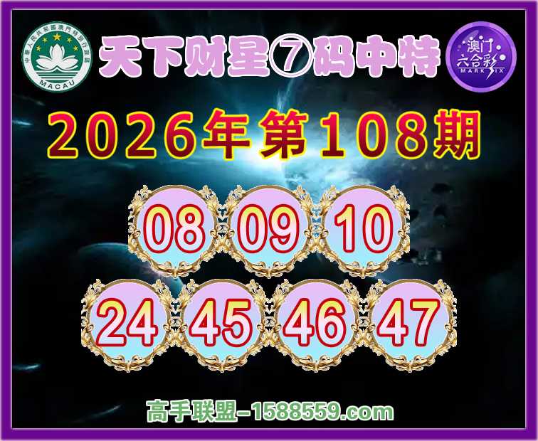 108期:〖天下财星〗 🍖⑦码中特🍖【08.09.10.24.45.46.47】开:45