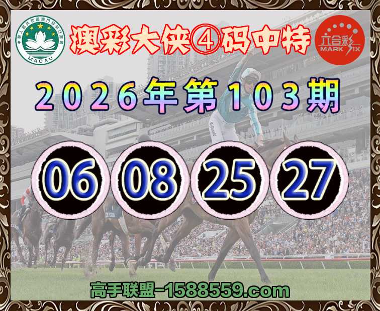 103期:『澳彩大侠』 ♣️④码中特♣️【06.08.25.27】开:06