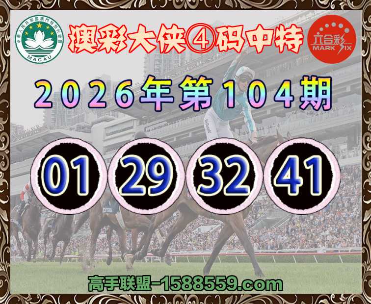 104期:『澳彩大侠』 ♣️④码中特♣️【01.29.32.41】开:01