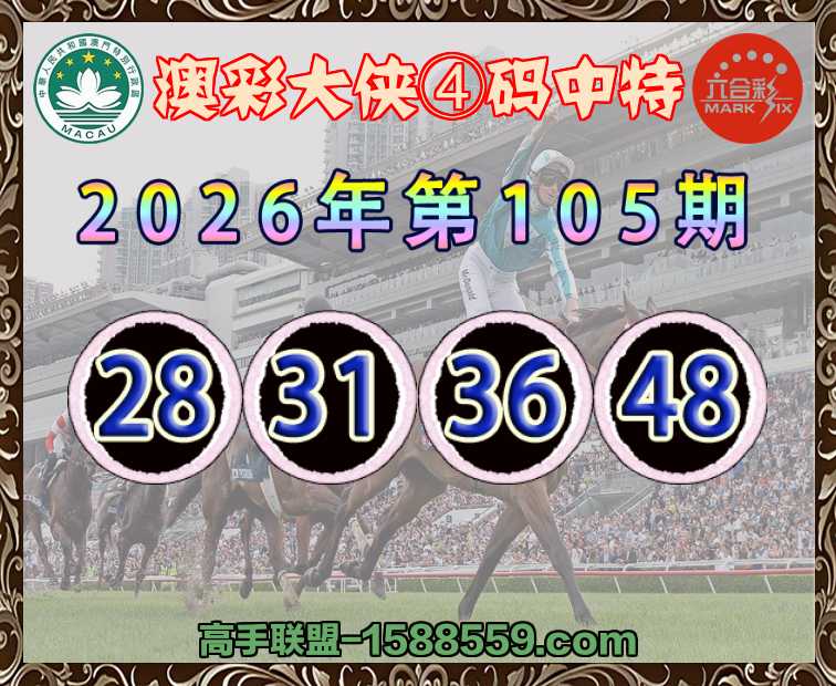 105期:『澳彩大侠』 ♣️④码中特♣️【28.31.36.48】开:28