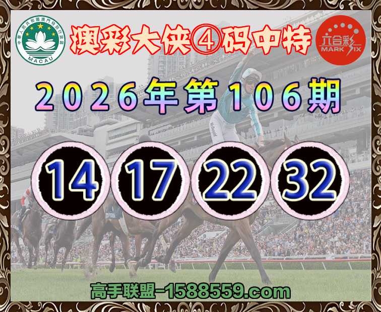 106期:『澳彩大侠』 ♣️④码中特♣️【14.17.22.32】开:22